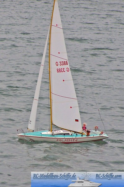 | Tipps für den Bau | Das Modell wurde 1995 aus dem Graupner Baukasten (Best. Nr. 2190) entsprechend der beiliegenden Baubeschreibung angefertigt. Es lässt sich von Leicht bis Starkwind gut segeln, man sollte sich noch den Sturm-Segel Satz zulegen. Bei sehr starkem Wind kann man die RUBIN auch nur mit der Fock segeln. |